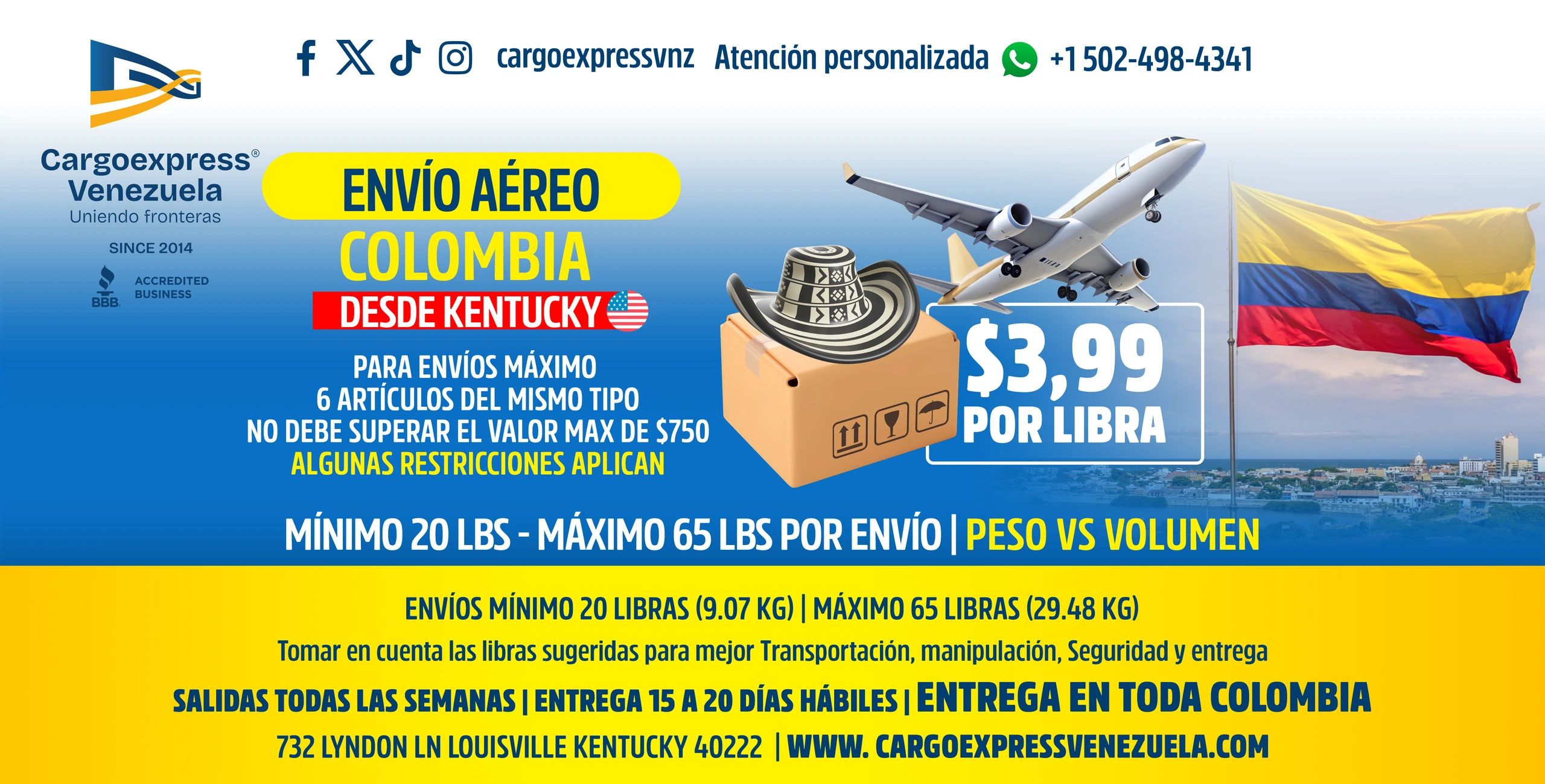 Tiempo estimado: 9 a 20 días hábiles una Vez Vuela desde Florida